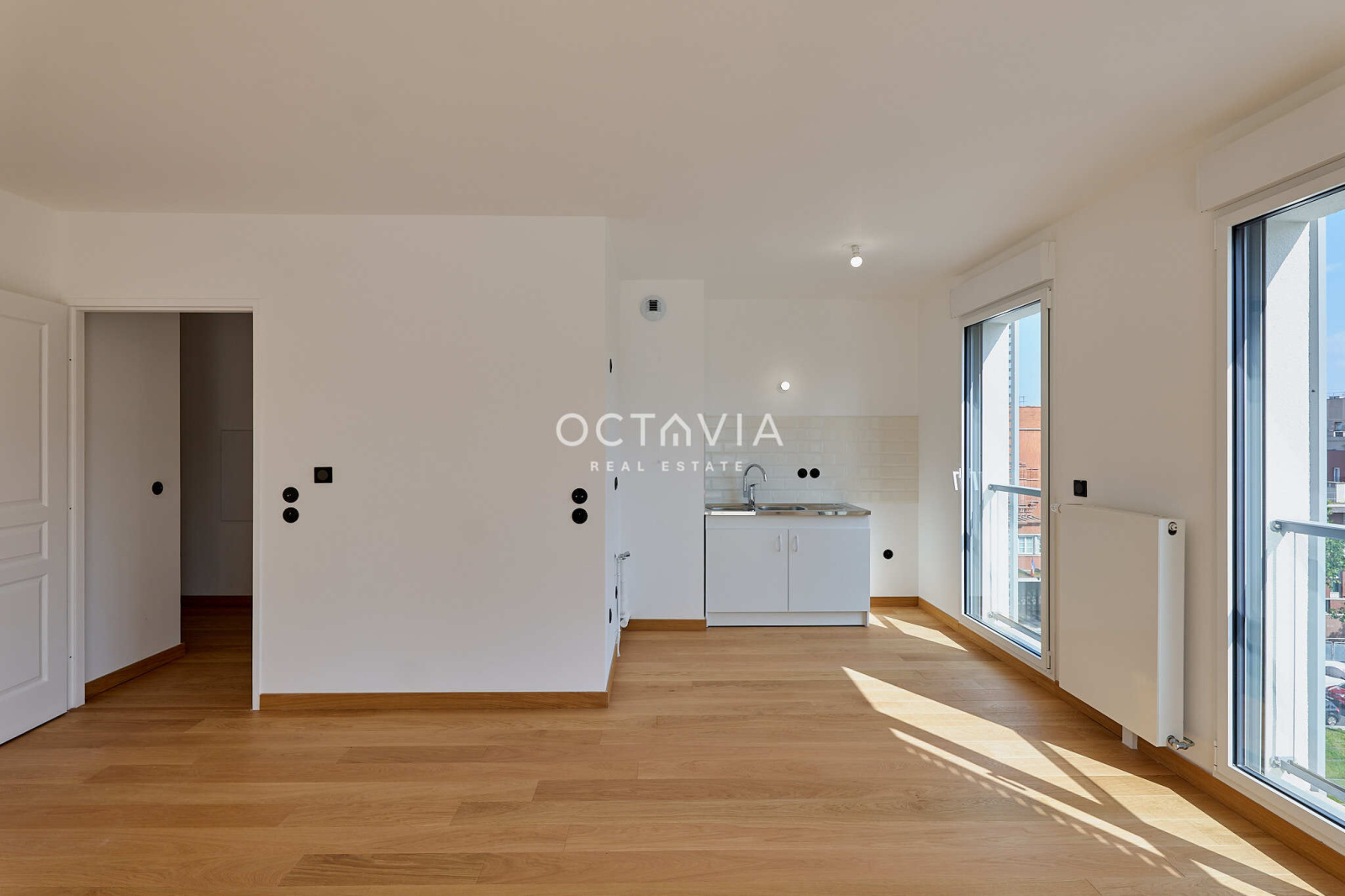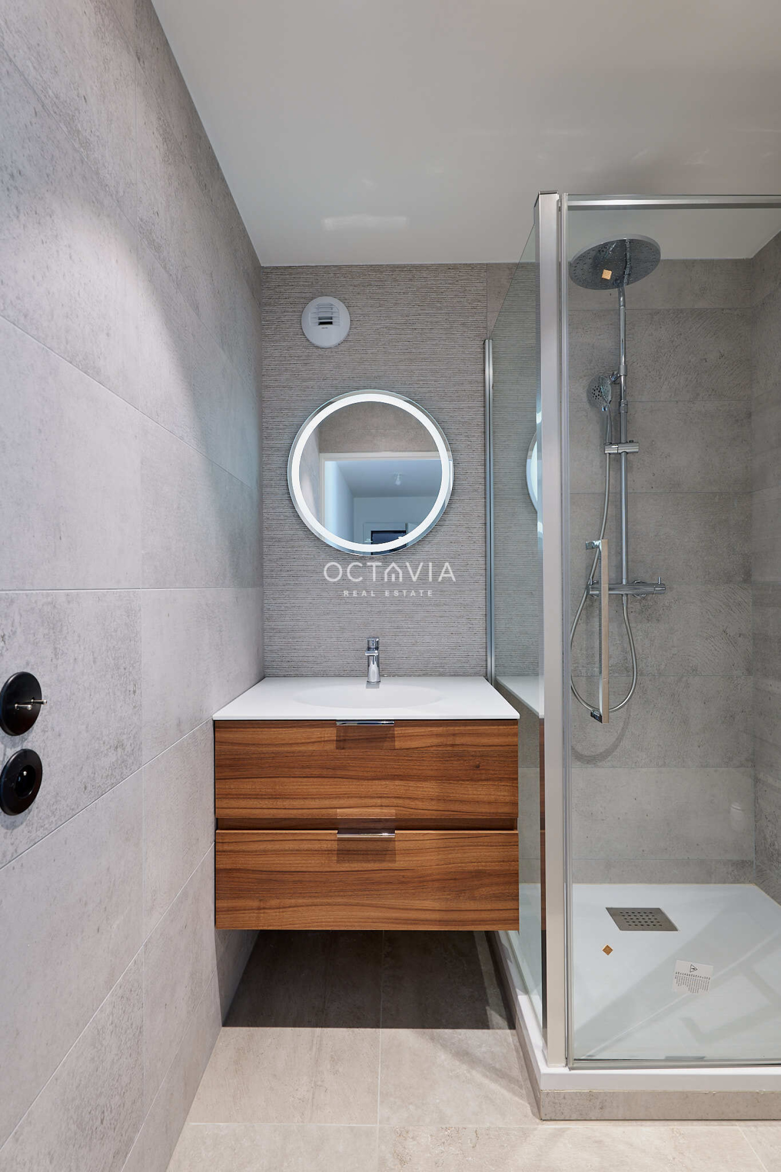 Avec des prestations soignées : parquet au sol, volet électrique, meuble vasque Porcelanosa radiateur sèche-serviettes.